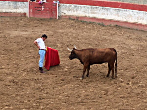 Imanol Sánchez tras realizar su tienta la definió como «una vaca muy seria, muy exigente, propia de la casa a la que pertenece que complica mucho la lidia para el torero. He tenido que emplearme a fondo».
